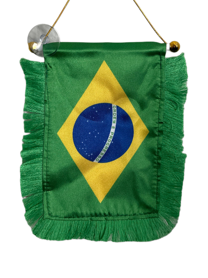 Brazil Flag Banner - 4x6 Fringy Window Hanging Flag - Mini Flag Banner & Car Rearview Mirror Decor - Fringed & Double Sided - Hanging Flag with Suction Cup