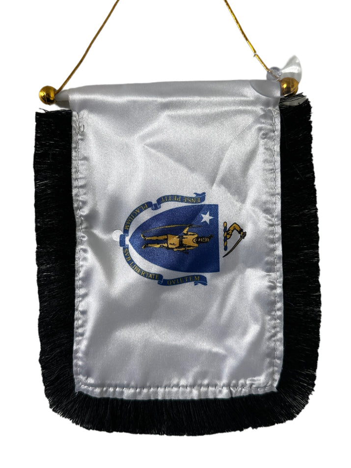 Massachusetts Flag Hanging Banner - 4x6 Fringy Window Hanging Flag - Mini Flag Banner & Car Rearview Mirror Decor - Fringed & Double Sided - Hanging Flag with Suction Cup