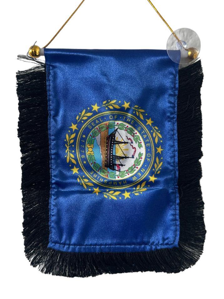 New Hampshire Flag Hanging Banner - 4x6 Fringy Window Hanging Flag - Mini Flag Banner & Car Rearview Mirror Decor - Fringed & Double Sided - Hanging Flag with Suction Cup